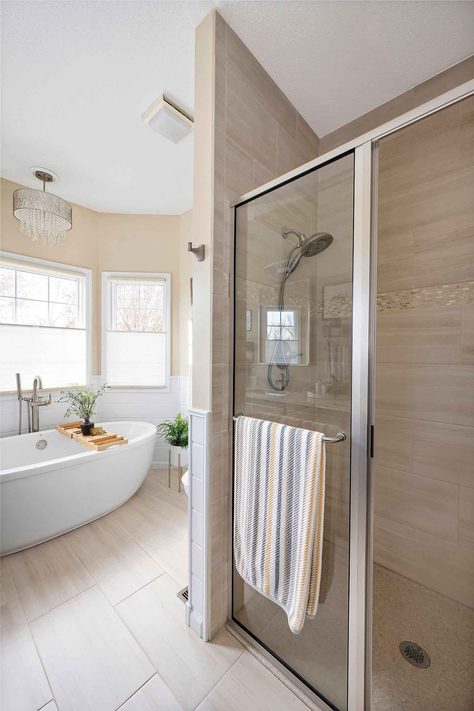 "Our new master bath is the best!! It's been a couple of years and we still love everything! We wanted a walk in closet, a walk in shower, a bubble tub and two vanities and we got it all!!"
